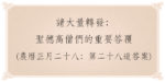 請大量轉發: 聖德高僧們的重要答覆 (農曆二月初二:第三十一道答案)